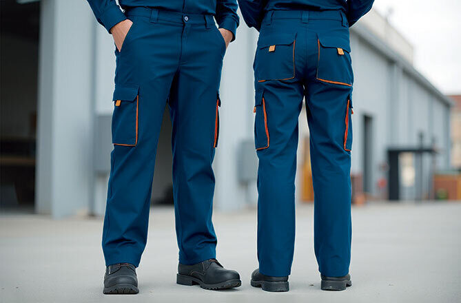 Confecionadas em tecido de sarja de algodão com poliéster para maior durabilidade e resistência.